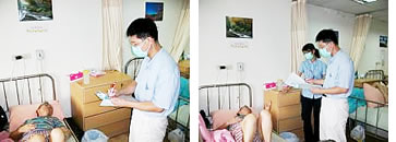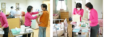 • 長期臥床老人照顧 ─ 每兩小時翻身預防褥瘡發生、定時扣背加強肺部功能。