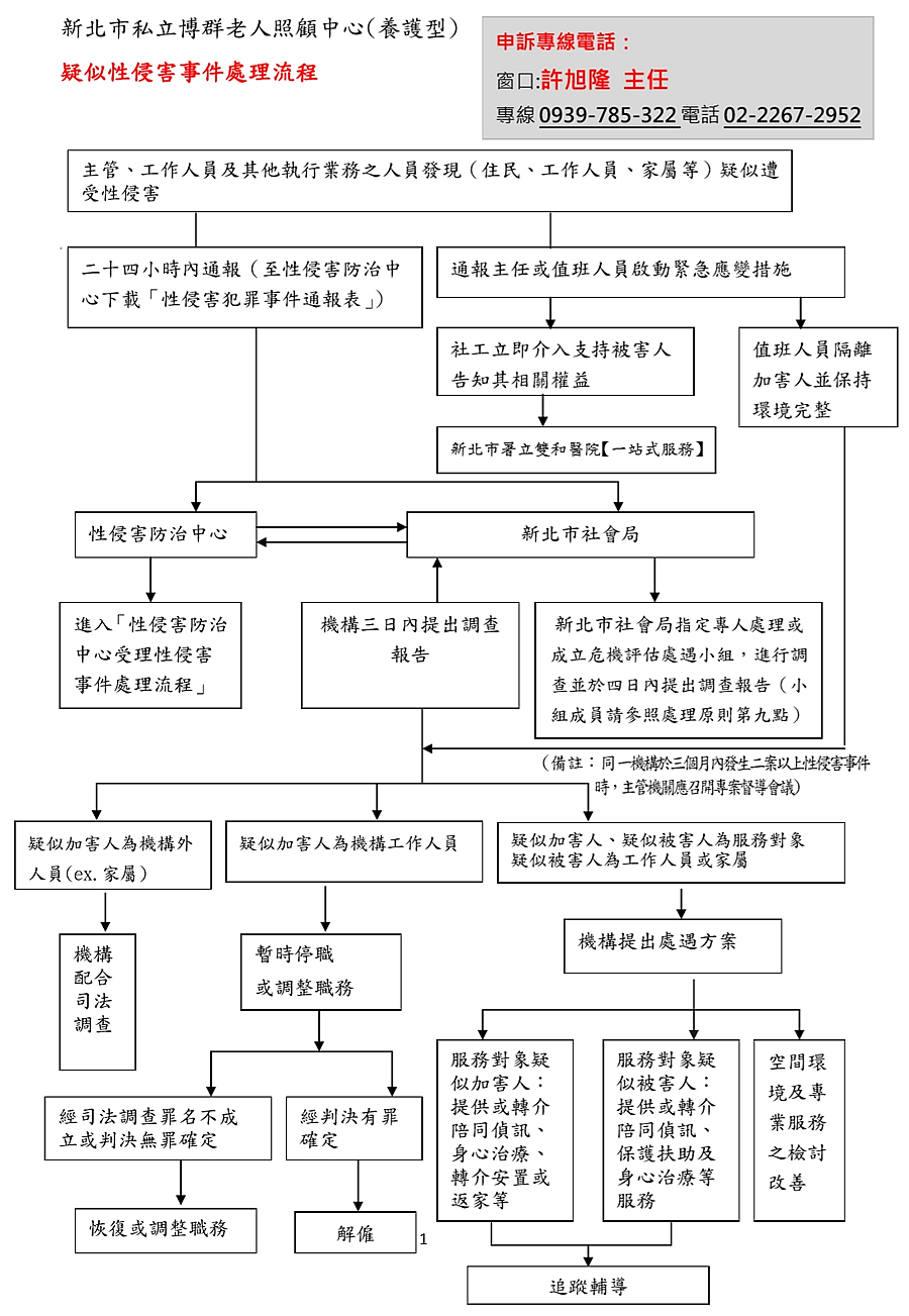 第九條 本機構主管、工作人員,知悉有對象(工作人員.住民或家屬)疑似被性