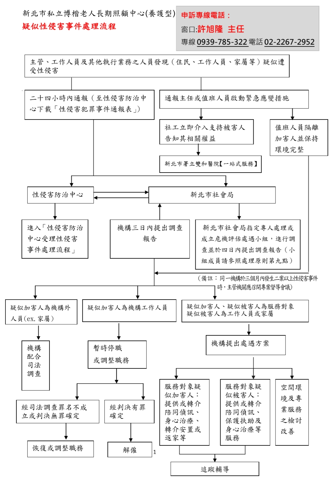 第九條 本機構主管、工作人員,知悉有對象(工作人員.住民或家屬)疑似被性